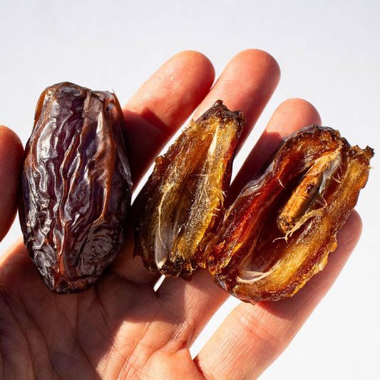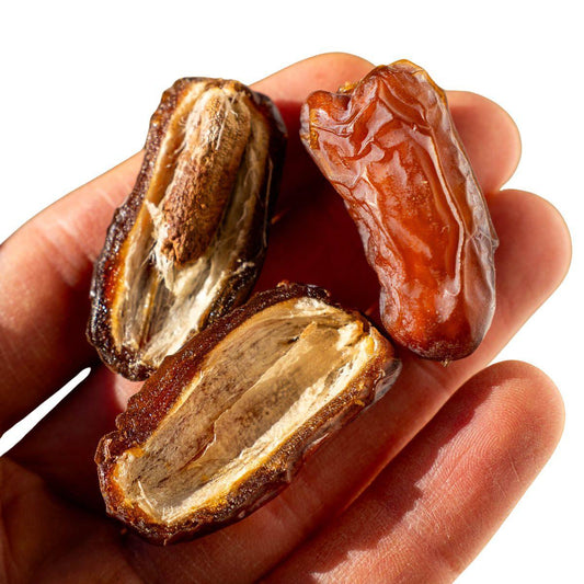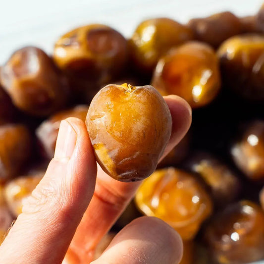 Um alle wertvollen Nährstoffe in den frischen Datteln zu erhalten und dir die natürlichste Dattelqualität zu bieten, achten wir darauf, dass sie nicht erhitzt, künstlich konserviert oder gezuckert werden wie herkömmliche Datteln.
